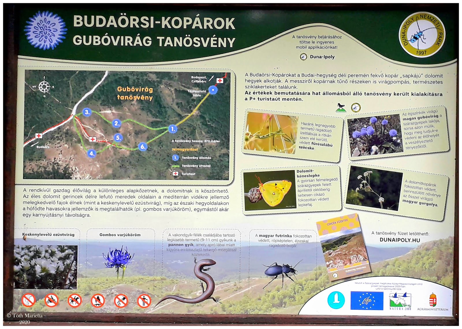 Gubóvirág Tanösvény mutatós ismeretterjesztő táblája